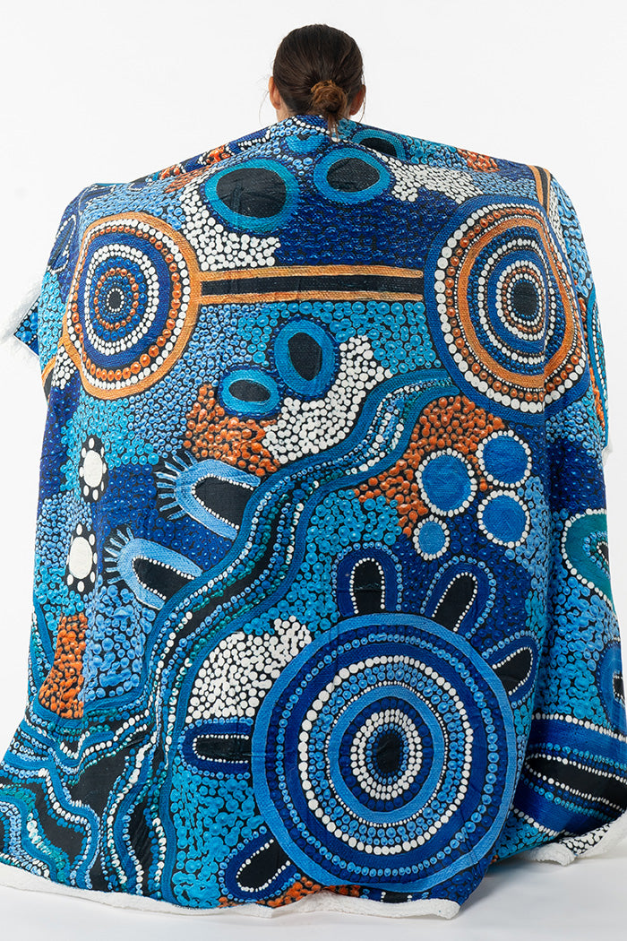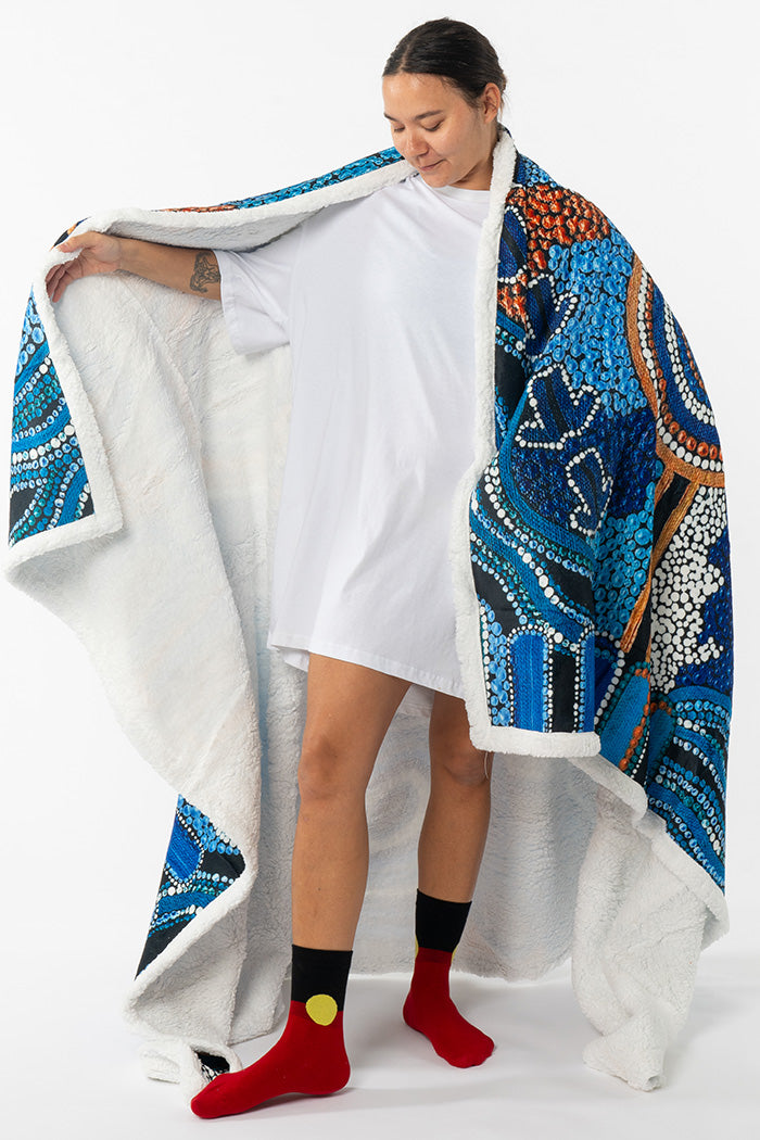 This beautiful collection of Sherpa Blankets brings together the work of multiple First Nations artists, each sharing their stories through rich colour and flowing design. Whether draped across your lounge, folded at the end of your bed, or gifted to someone special, these blankets are a warm embrace of comfort and creativity.