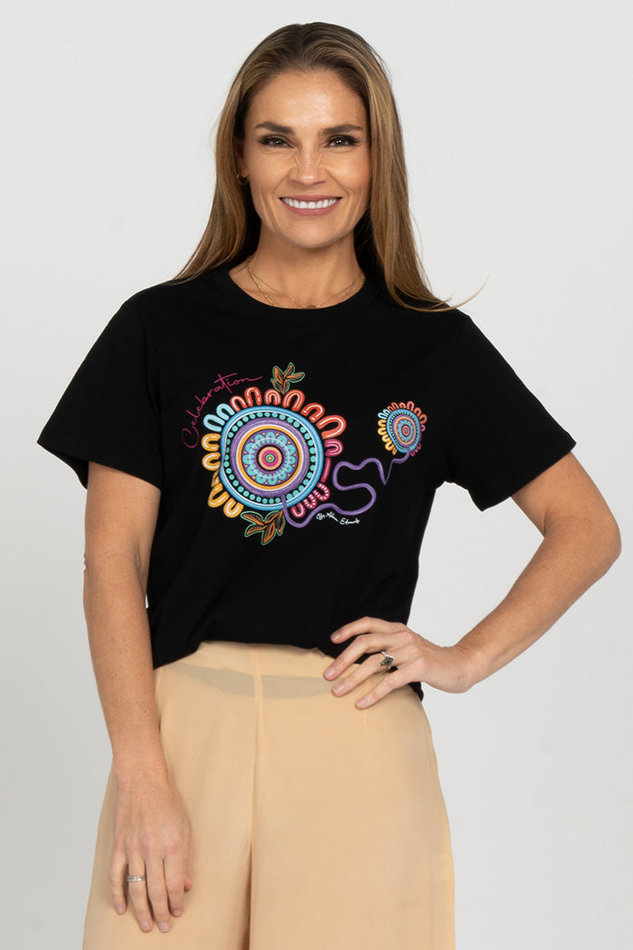 Celebration Black Cotton Crew Neck Women's T-Shirt