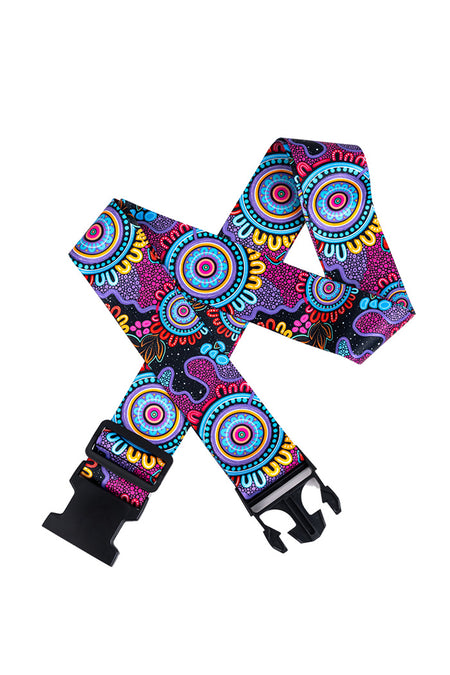 Brighten up your travels with a burst of colour and artwork! This vibrant adjustable luggage belt not only helps you effortlessly identify your suitcase but also brings the beauty of First Nations artwork to your journeys. Designed to combine practicality and artistic expression, it’s a meaningful way to showcase your appreciation for Indigenous culture.