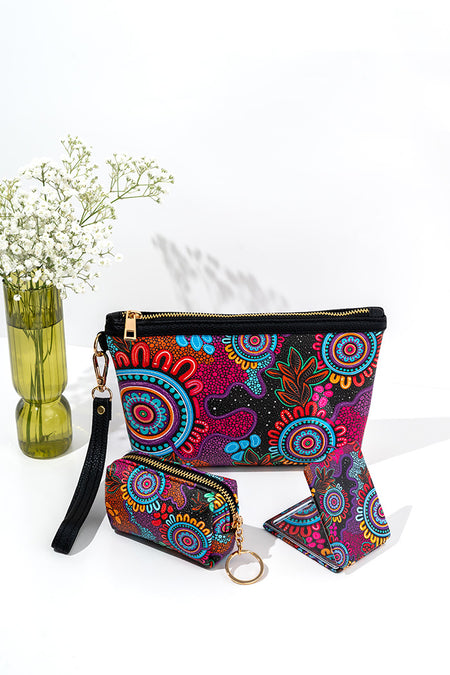 The set includes a mini pouch so you can store those small essentials you need on the go. The included compact mirror is the perfect everyday size to fit in your handbag or carry-on luggage for quick touch-ups while travelling. Comes in a range of gorgeous designs from First Nations artists across Australia.