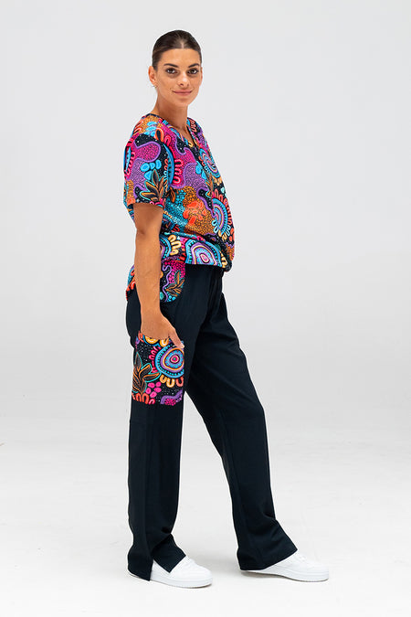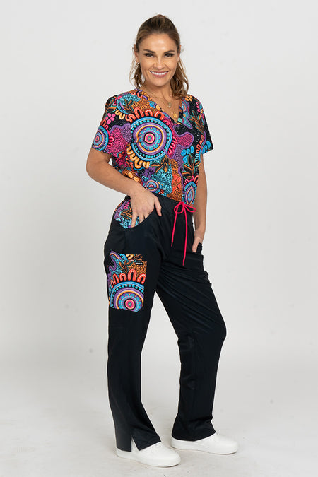 Featuring vibrant First Nations artwork on a tailored yet breathable design, these pants are as practical as they are striking. Complete your uniform with matching scrub tops and a coordinating scrub cap that bring together comfort, function, and meaningful design.