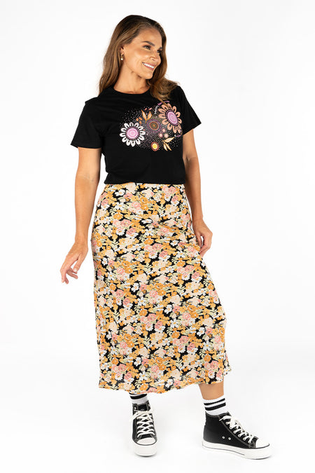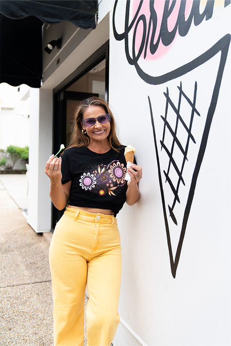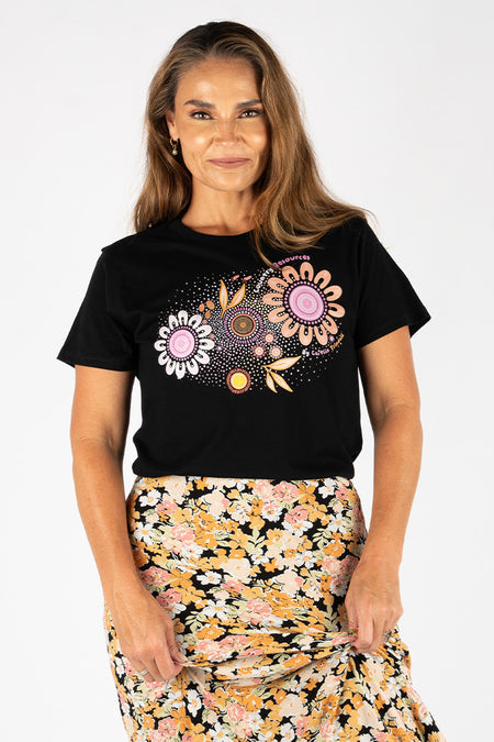Introducing a new line with minimalist designs from First Nations artists. The central symbols are highlighted to show them off against some bold new colours for the Tee range. Be sure to check out the matching tote and showcase of each artists' work.