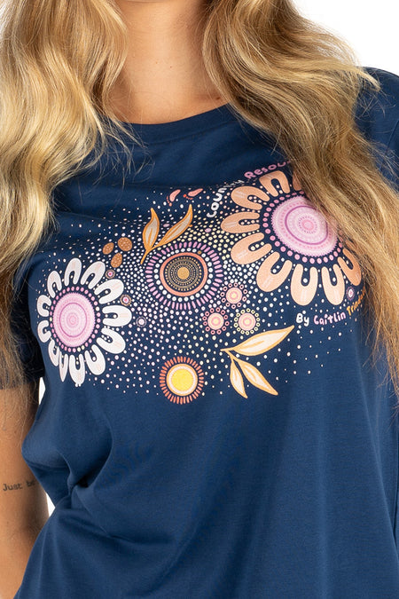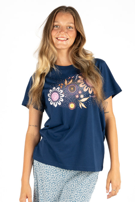 Introducing a new line with minimalist designs from First Nations artists. The central symbols are highlighted to show them off against some bold new colours for the Tee range. Be sure to check out the matching tote and showcase of each artists' work.
