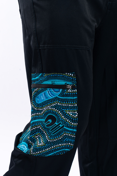 Featuring vibrant First Nations artwork on a tailored yet breathable design, these pants are as practical as they are striking. Complete your uniform with matching scrub tops and a coordinating scrub cap that bring together comfort, function, and meaningful design.