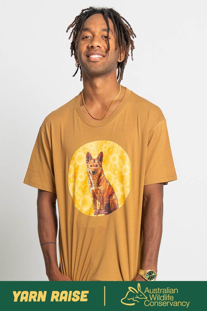 Dingo (Wilkarr) 'Australian Wildlife Conservancy' Camel Cotton Crew Neck Unisex T-Shirt