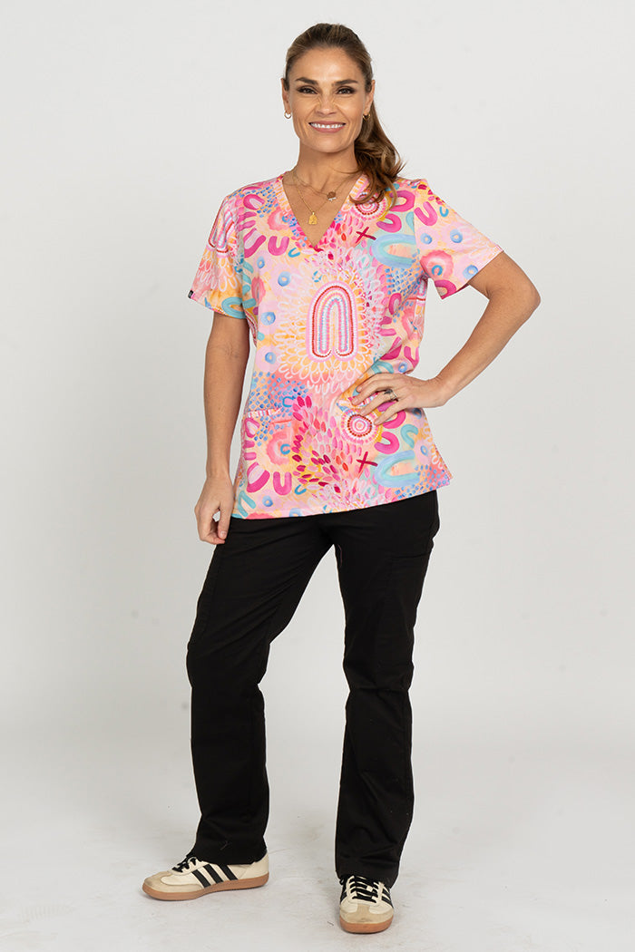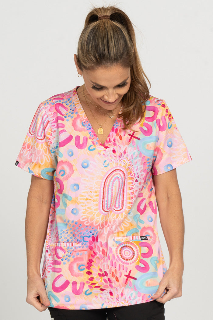 Brighten up long days on your feet caring for those who need it most! Our scrubs feature First Nations artwork printed onto excellent quality workwear that is both practical and beautiful.