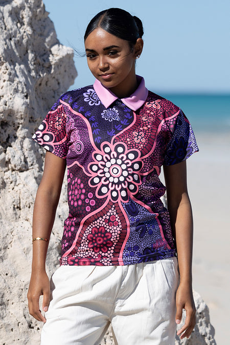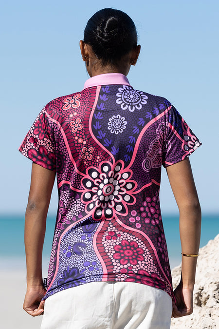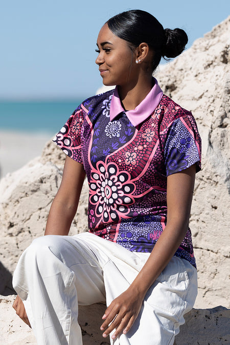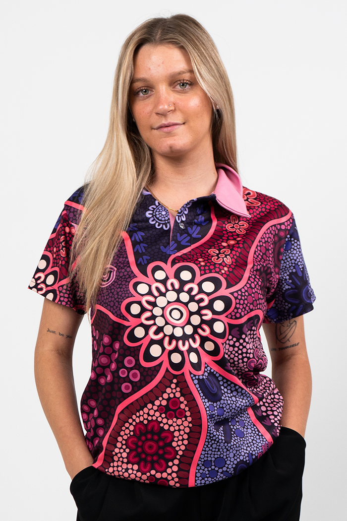 With built-in UPF50+ sun protection, you can enjoy the outdoors with confidence, knowing your skin is shielded from harsh UV rays. Available in unisex, fitted, and kids’ sizes, this polo is more than just everyday wear—it’s a vibrant celebration of First Nations culture, designed to be seen and appreciated wherever you go.