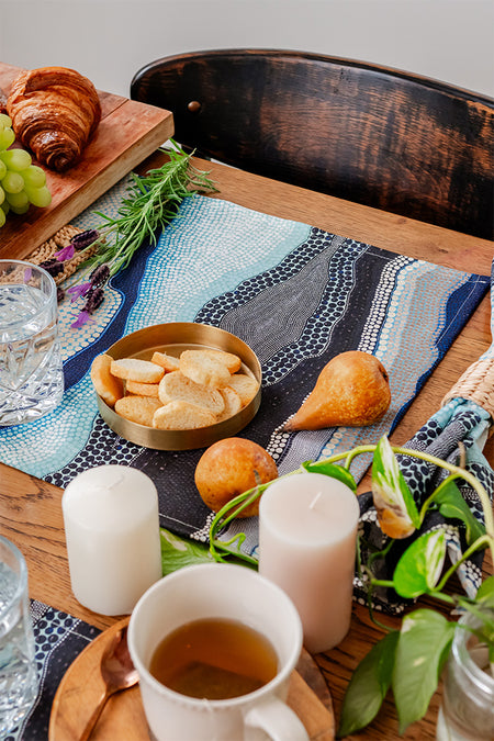 Our latest range of homewares features demure yet sparkling designs inspired by natural landscapes and connection to Country.