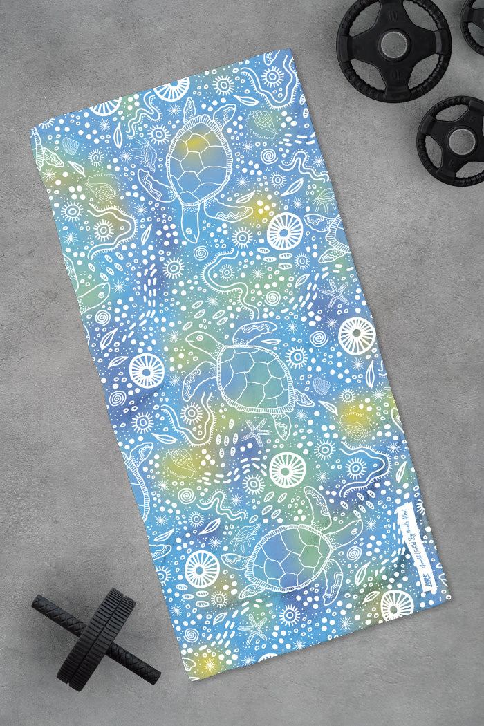 Featuring First Nations artwork print on the front and 100% cotton backing, each towel is designed for softness, durability, quick-drying, and superior absorbency. Ideal for gym sessions, yoga, or outdoor activities, it’s the handy companion that keeps you fresh and ready to move.