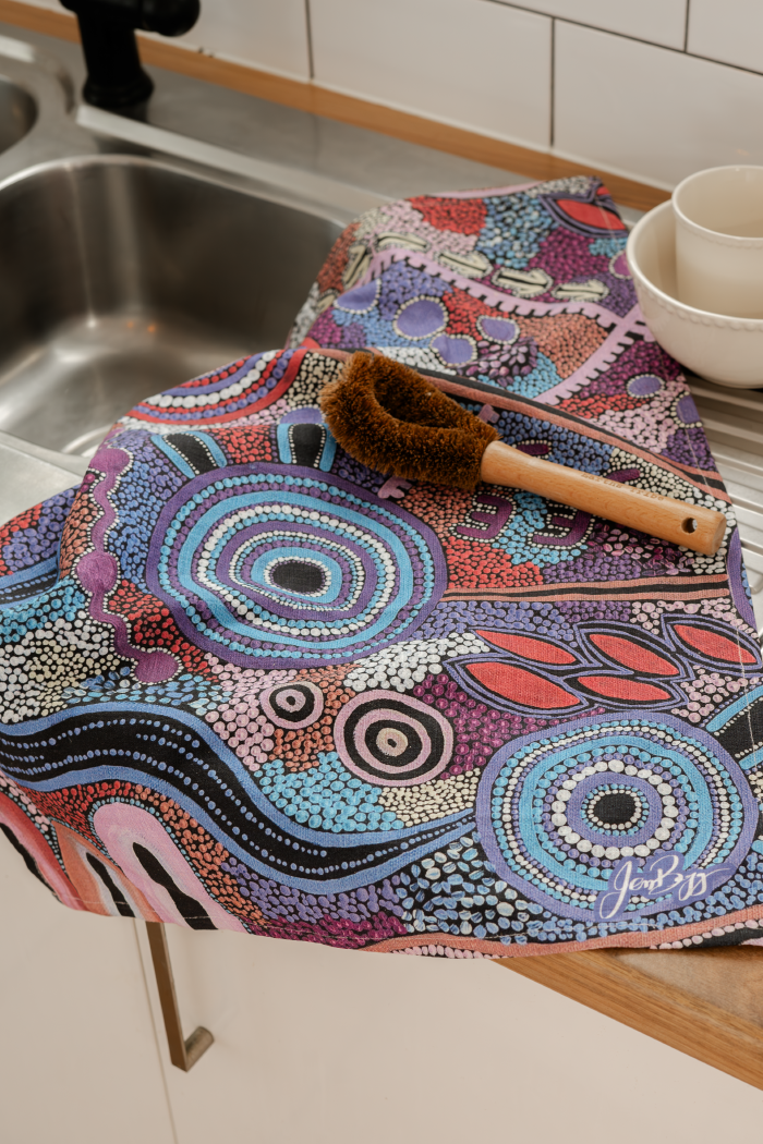 This stunning range of homewares is Aussie made, printed and sewn locally by our team in Meanjin (Brisbane). Made from a top-quality flax linen blend, these tea towels are a bright and breathy addition to any kitchen.