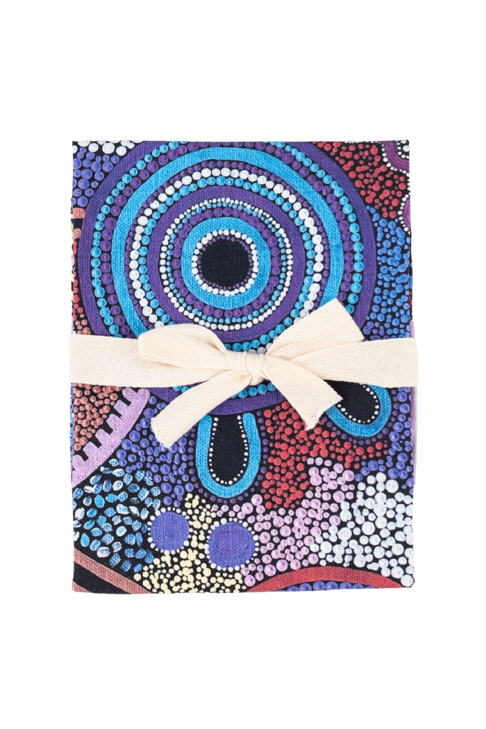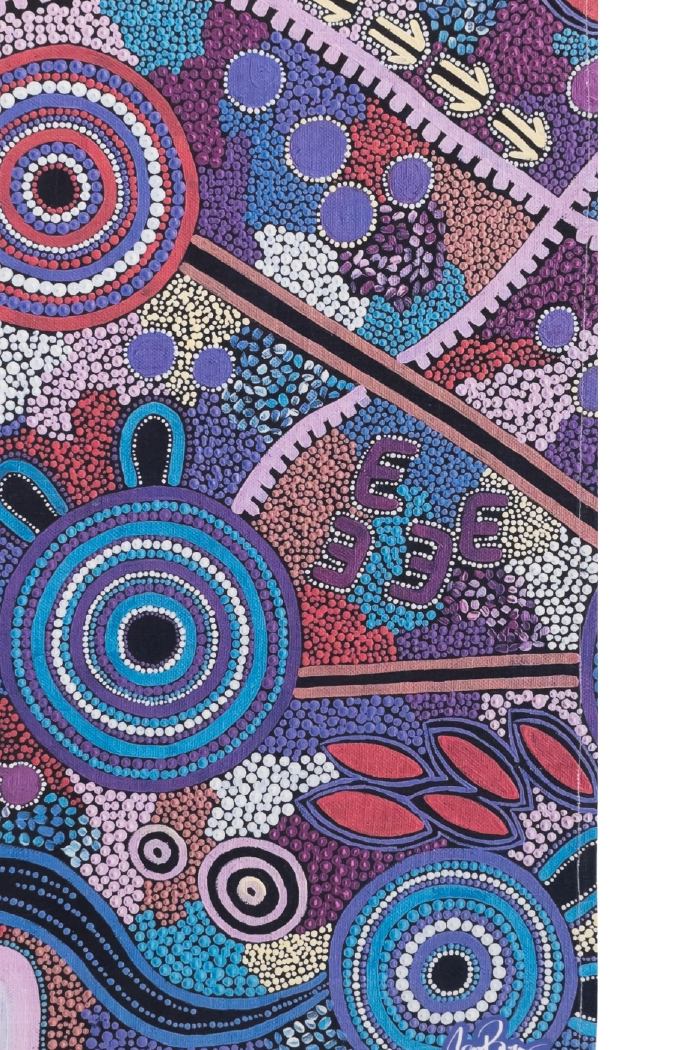 Proud Yued Noongar artist, Jessica Begg draws inspiration from her family, the native flora of the Yued region, the heat in the summer, the Moore River and the meeting places in between. Her distinctive contemporary style is her interpretation of her culture through an unrestricted palette and traditional shapes.