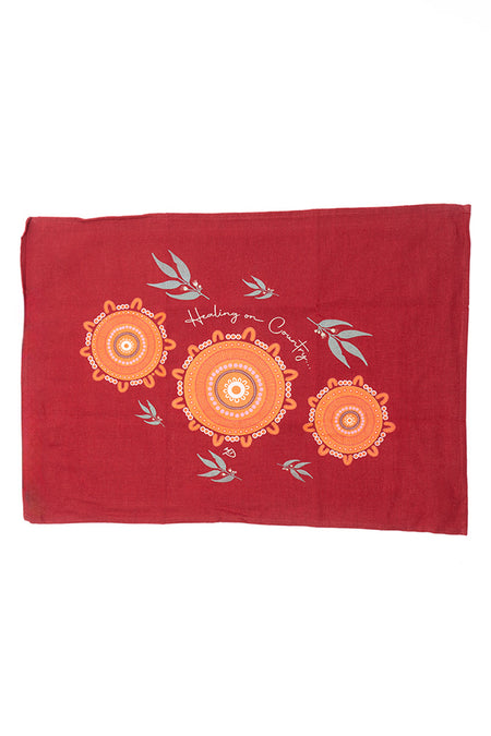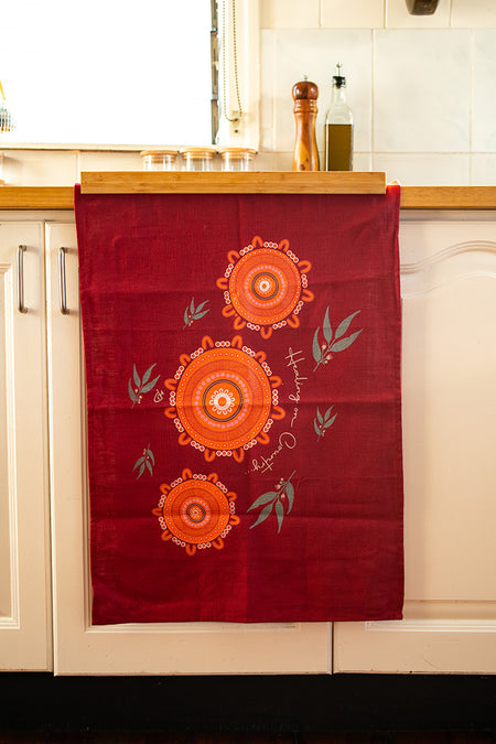 Heal On Country Maroon Linen Blend Tea Towel