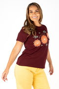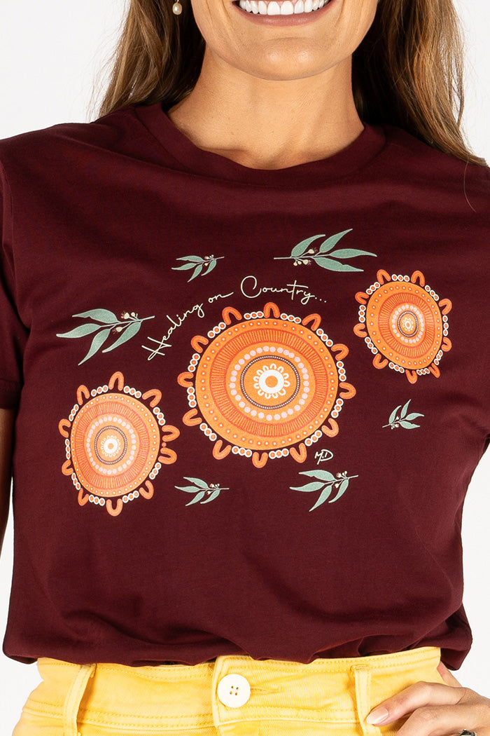 Healing On Country Burgundy Cotton Crew Neck Women's T-Shirt