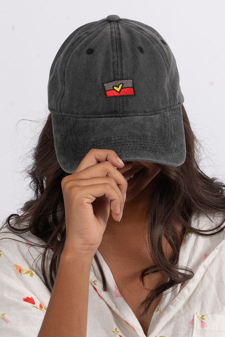 Heart Aboriginal Flag Black Vintage Washed Cap