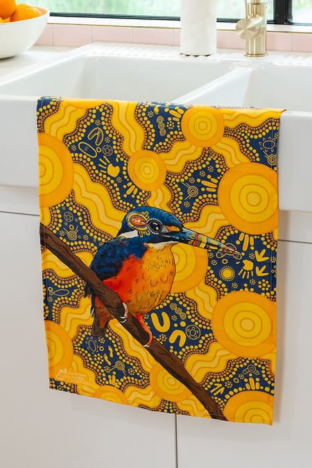 Kingfisher (Azure Nurnamamdatba) 'Australian Wildlife Conservancy' Linen Blend Tea Towel