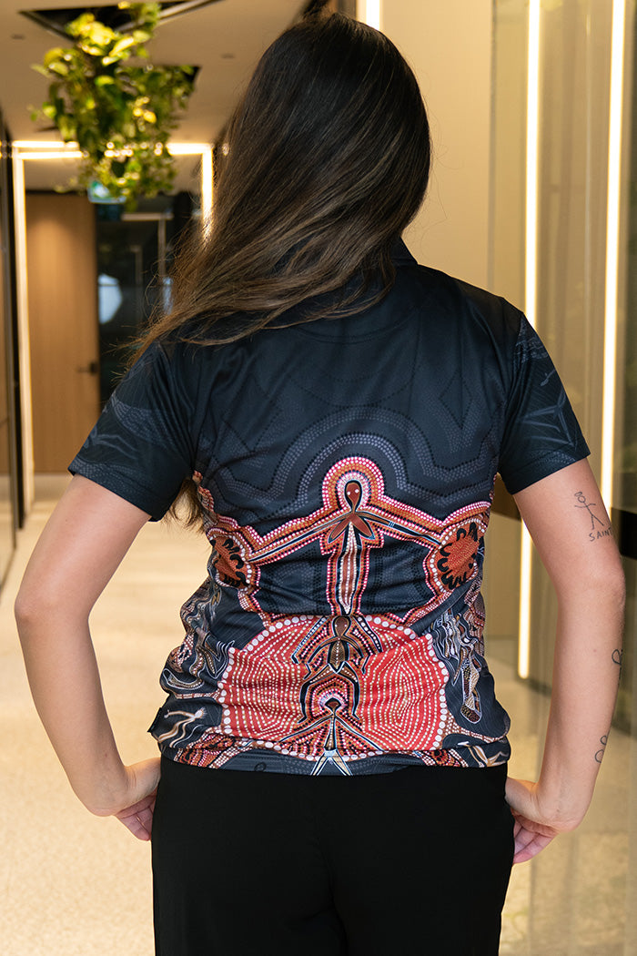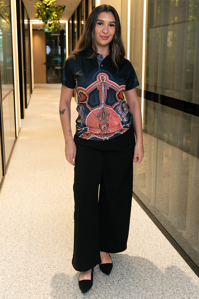 With built-in UPF50+ sun protection, you can enjoy the outdoors with confidence, knowing your skin is shielded from harsh UV rays. Available in unisex and fitted sizes, this polo is more than just everyday wear—it’s a vibrant celebration of First Nations culture, designed to be seen and appreciated wherever you go.