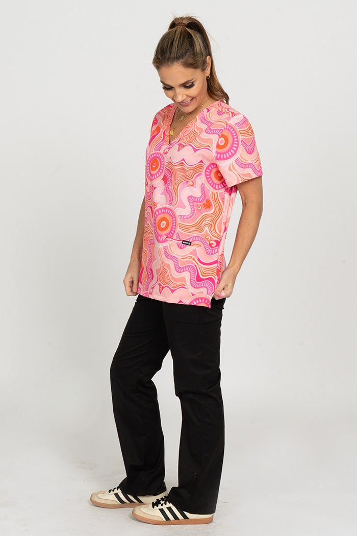 Brighten up long days on your feet caring for those who need it most! Our scrubs feature First Nations artwork printed onto excellent quality workwear that is both practical and beautiful.