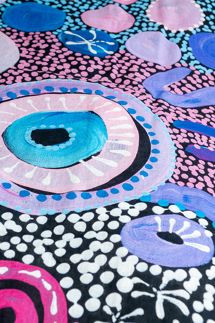We collaborate with a large community of First Nations artists from across Australia, each bringing their own unique and authentic artistic style. The foundation of partnerships is respect, empowerment, and celebration, with royalties paid to artists on every purchase – supporting long-term career growth and creativity. Discover and learn about artists here.