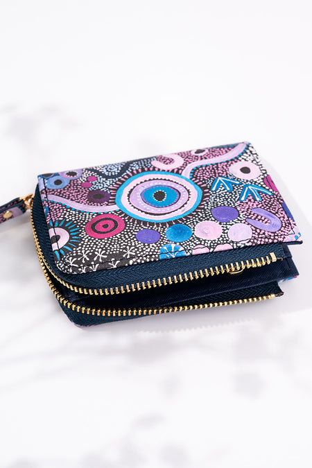 Featuring a top and side zip closure, our zipper wallets showcase stunning artworks by First Nations artists across Australia. Its compact yet spacious design fits all your essentials with 6 internal credit card slots and an internal coin compartment, for ideal organisation.