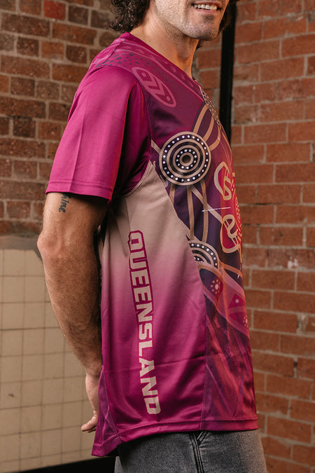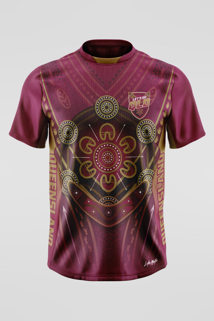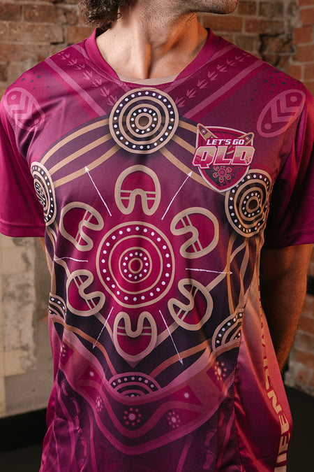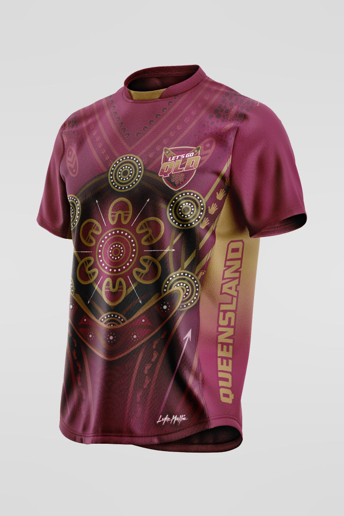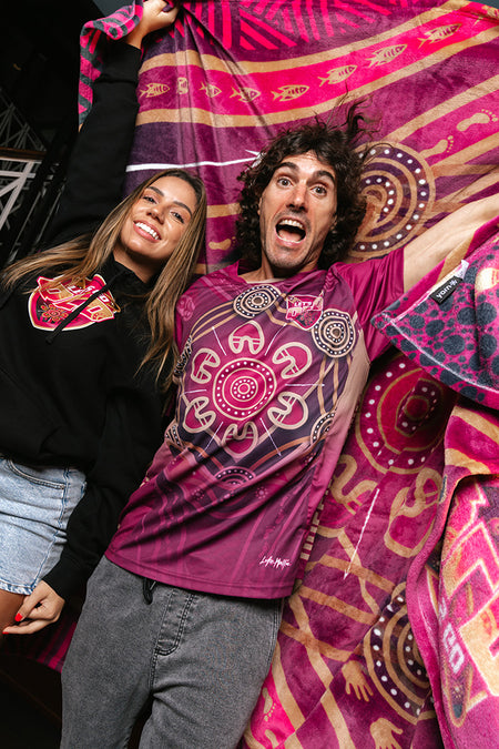 Are you QLD or NSW? Our latest State vs State collection is here to help you rep your team! Featuring stunning Queensland artwork from Kuku Yalanji and Kubin Village artist Luke Mallie and New South Wales artwork from Wiradjuri artist Amy Kilby.