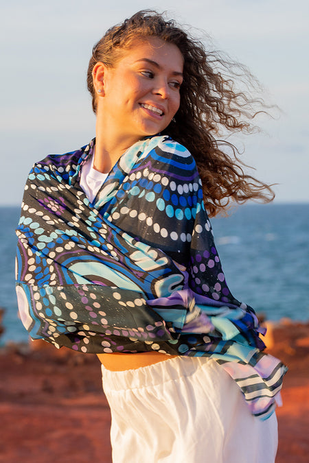 Featuring artwork that reflects on 'For Our Elders', our lightweight scarves add a splash of colour that can be worn in any season.
