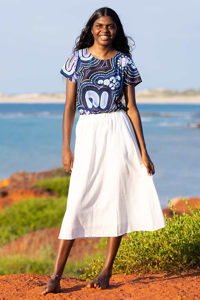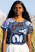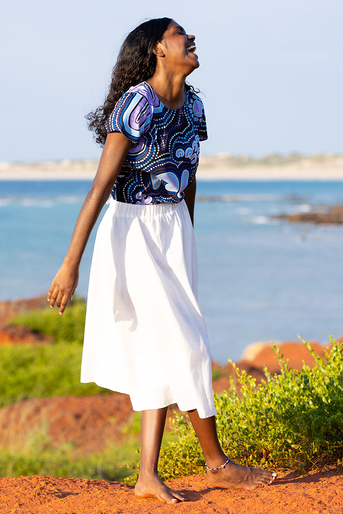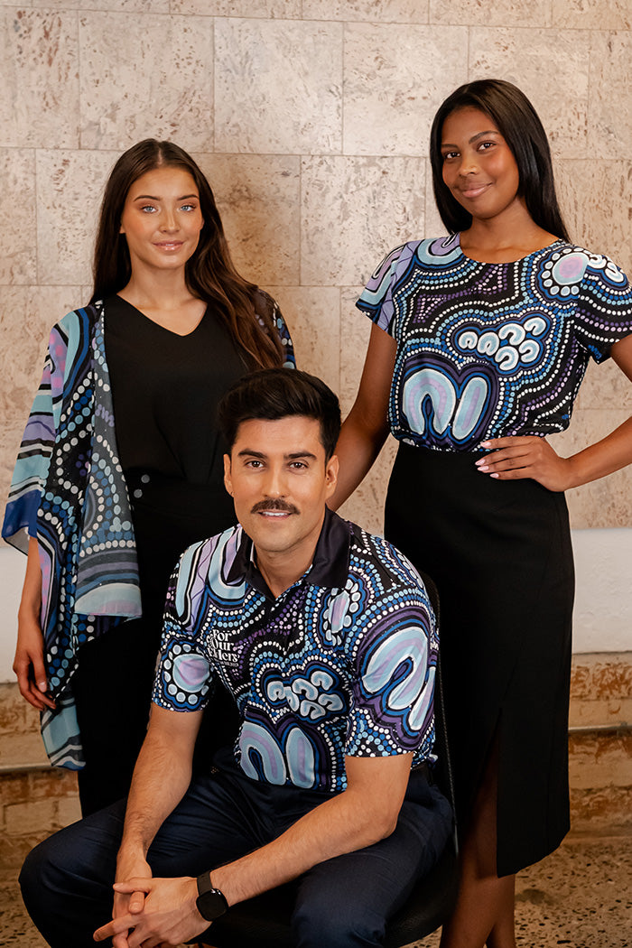 These vibrant fashion feature artwork that represents the theme “For Our Elders”, an acknowledgment of the pivotal roles that Elders have and continue to play in their communities and a celebration of everything they have achieved. This item was originally released as part of our iconic NAIDOC 2023 collection.