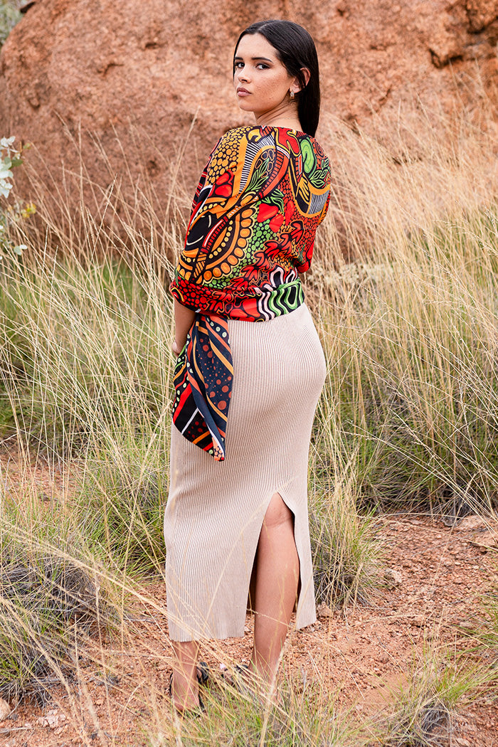 We collaborate with a large community of First Nations artists from across Australia, each bringing their own unique and authentic artistic style. The foundation of partnerships is respect, empowerment, and celebration, with royalties paid to artists on every purchase – supporting long-term career growth and creativity. Discover and learn about artists here.