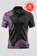 With built-in UPF50+ sun protection, you can enjoy the outdoors with confidence, knowing your skin is shielded from harsh UV rays. Available in unisex and fitted sizes, this polo is more than just everyday wear—it’s a vibrant celebration of First Nations culture, designed to be seen and appreciated wherever you go.