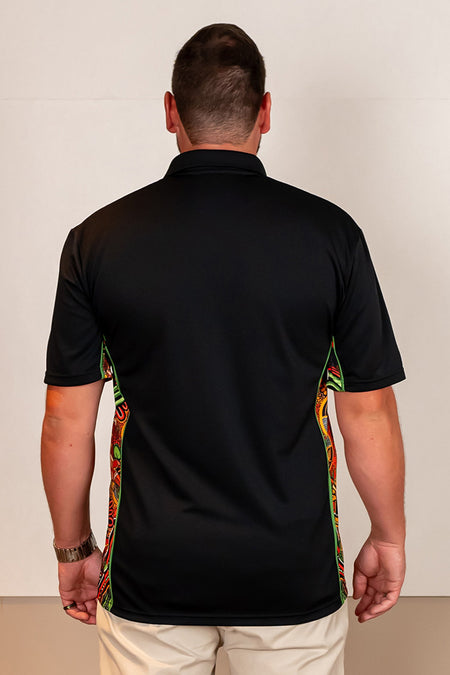 These soft, breathable polo shirts are made from sustainably grown bamboo and have a high sun protection factor of UPF50+. A more subtle take on our classic polo, they feature contrast panels running down the sides and inner collar. Available in fitted and unisex styles that showcase the vibrant First Nations artwork created especially for the 2024 theme.