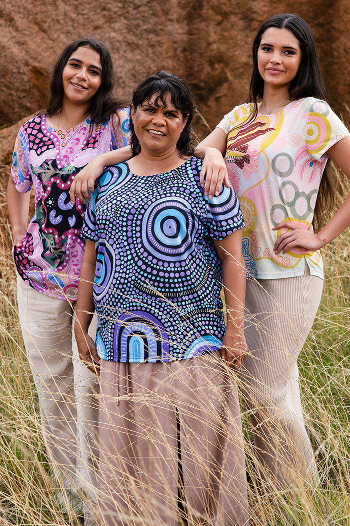 We collaborate with a large community of First Nations artists from across Australia, each bringing their own unique and authentic artistic style. The foundation of partnerships is respect, empowerment, and celebration, with royalties paid to artists on every purchase – supporting long-term career growth and creativity. Discover and learn about artists here.