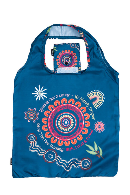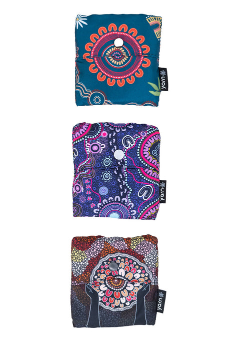 Mandy Draper NAIDOC 2025 rPET Reusable Fold-Up Shopping Bag (3 Pack) with Drawstring Bag
