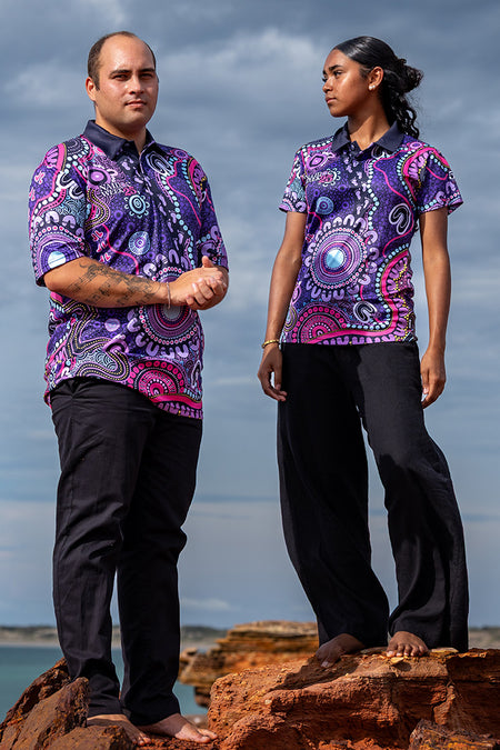 With built-in UPF50+ sun protection, you can enjoy the outdoors with confidence, knowing your skin is shielded from harsh UV rays. Available in unisex, fitted, and kids’ sizes, this polo is more than just everyday wear—it’s a vibrant celebration of First Nations culture, designed to be seen and appreciated wherever you go.