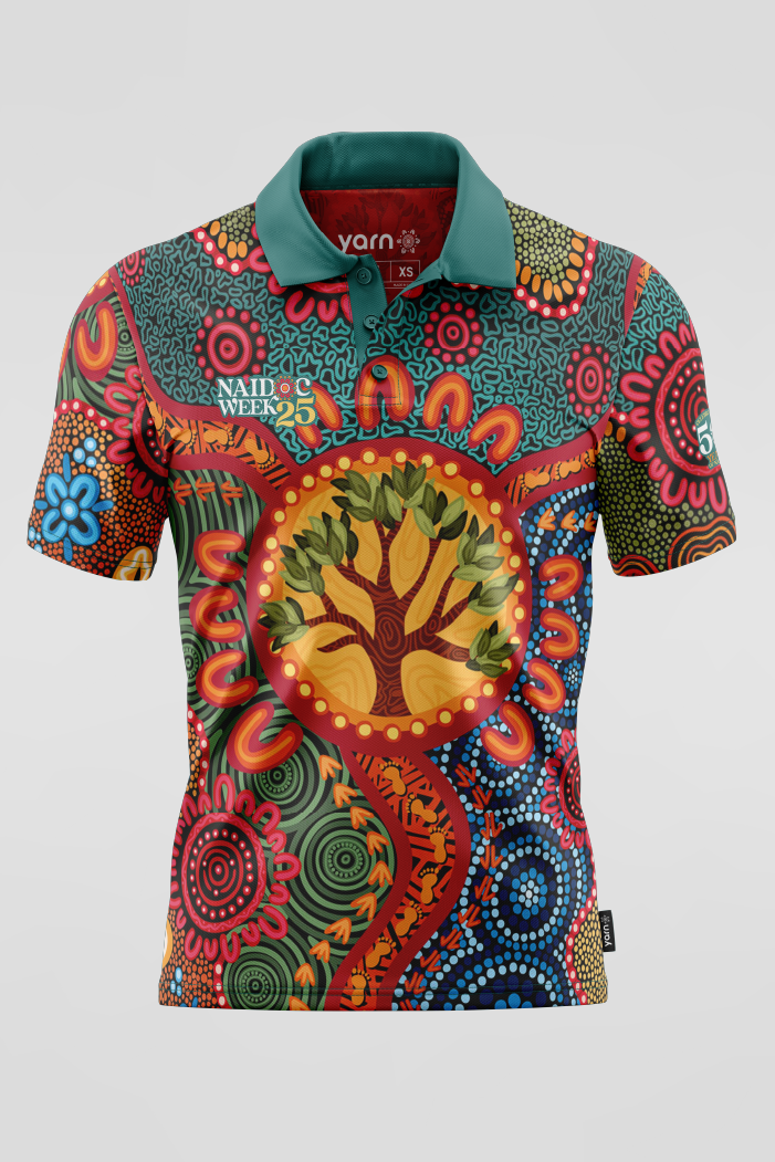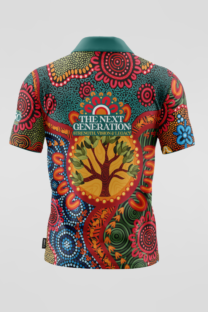 Our NAIDOC Week 2025 Polo collection features our talented collaborating artists' reflection on and response to this year's theme ‘The Next Generation: Strength, Vision & Legacy’.