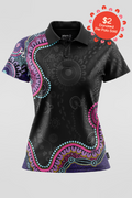 With built-in UPF50+ sun protection, you can enjoy the outdoors with confidence, knowing your skin is shielded from harsh UV rays. Available in unisex and fitted sizes, this polo is more than just everyday wear—it’s a vibrant celebration of First Nations culture, designed to be seen and appreciated wherever you go.