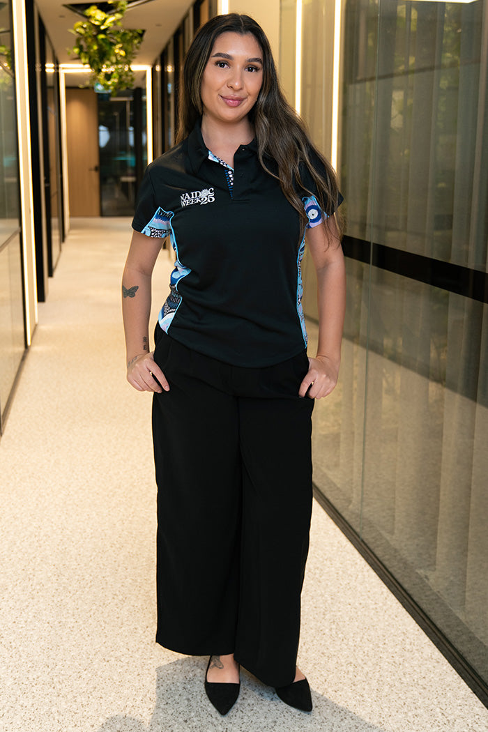 Future Dreaming NAIDOC 2025 Black Bamboo (Simpson) Women's Fitted Polo Shirt