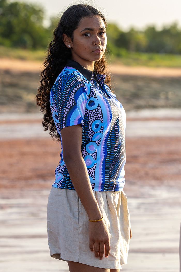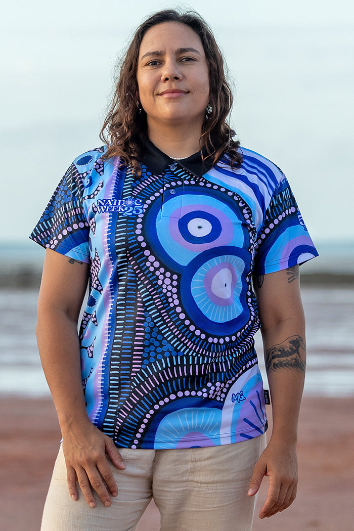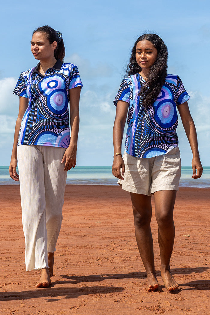 With built-in UPF50+ sun protection, you can enjoy the outdoors with confidence, knowing your skin is shielded from harsh UV rays. Available in unisex, fitted, and kids’ sizes, this polo is more than just everyday wear—it’s a vibrant celebration of First Nations culture, designed to be seen and appreciated wherever you go.