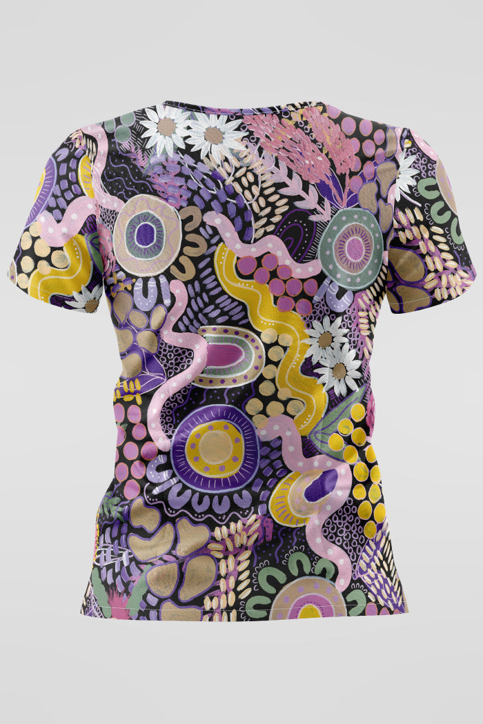 Brighten your workday with scrubs that blend cultural significance with high-performance workwear. Featuring First Nations artwork on a tailored yet breathable design, this scrub top is as practical as it is beautiful.