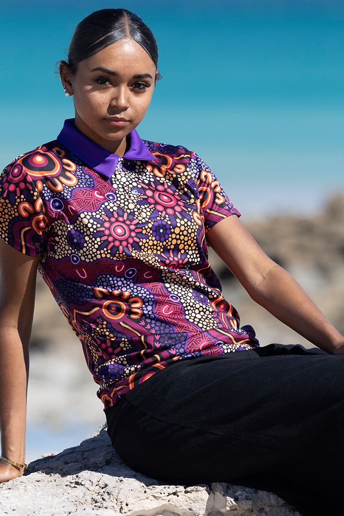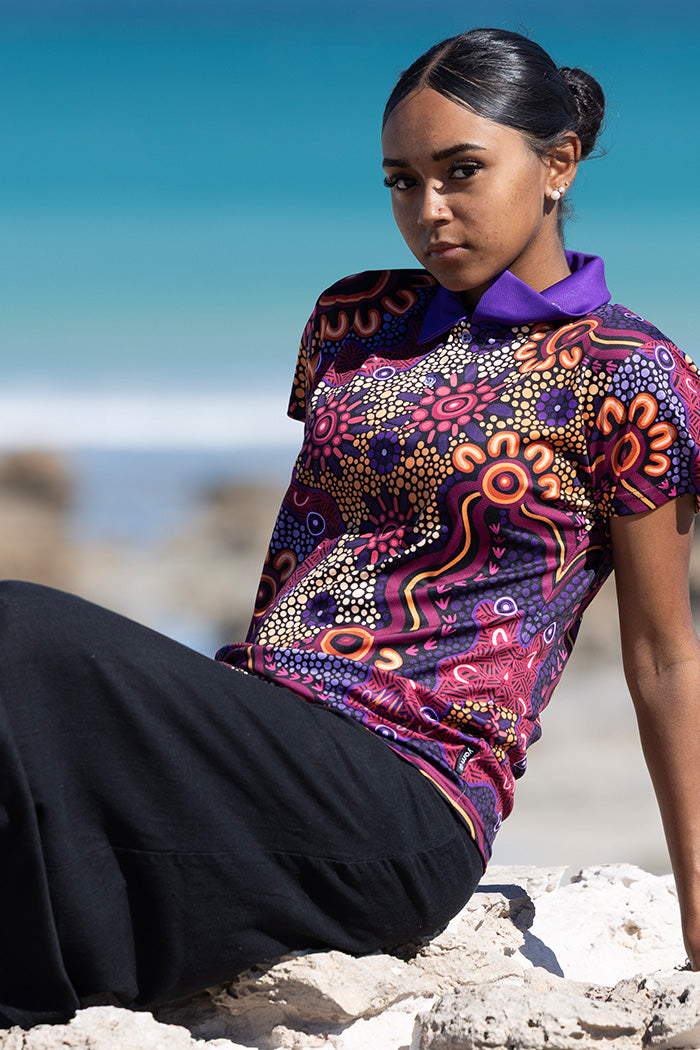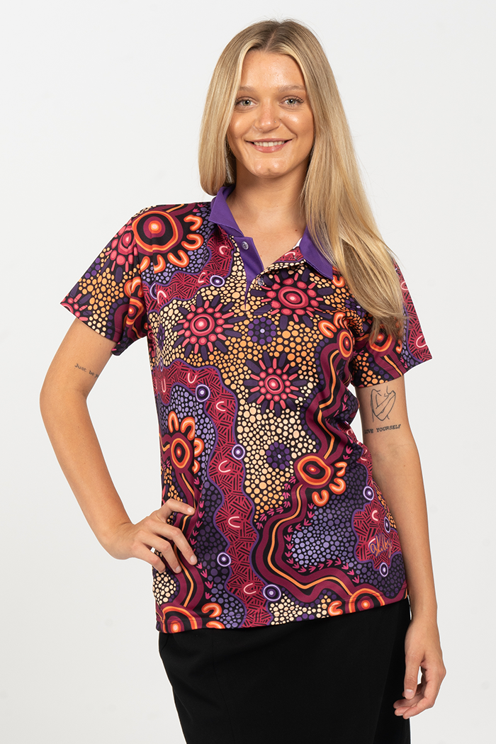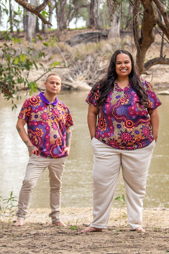 Amy Kilby is a proud Wiradjuri woman from the Riverina NSW. She has always found joy in art, particularly painting and drawing but since found a deep passion in exploring digital art in Indigenous styles. Her impressive use of palettes creates striking artworks in her new polo and clothing collection, inspired by and dedicated to her Miyagan (family). From birth families to chosen families, the people closest to us support us, keep us strong, and lift us up through their love, wisdom, and care.