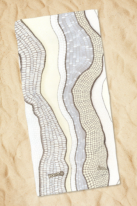 Get ready to kick back and relax at the beach or pool with this beautiful towel. Made from soft and absorbent fabric with a cotton backing, this towel is perfect for drying off after a swim or lounging in the sun. Each towel features a beautiful, sublimated design that tells a unique story of the artist's deep connection to Country.
