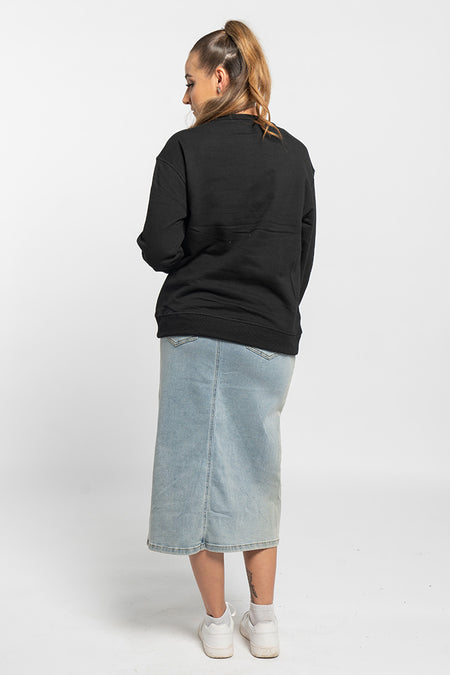 People And The Sun Black Cotton Blend Crew Neck Women's Sweatshirt