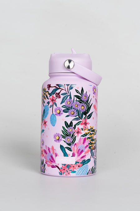 Pink Banksia 650mL Insulated Stainless Steel Drink Bottle with Handle