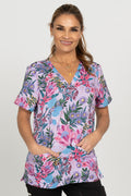 With a comfy V-neck, tailored yet breathable fit, and 3 pockets for all your essentials, this Scrub Top has all you need to get through your working day. Made with a touch of spandex and a sturdy yet light poly-blend, you feel protected and comfortable all day long in these beautiful designs.