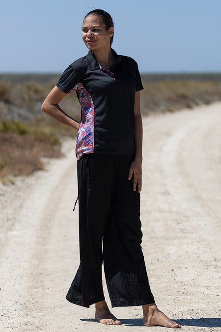 Jessica's art is inspired by family, Country, and Culture in the Yued region in Western Australia. In her debut polo and fashion range she celebrates and honours her heritage through vibrant pieces that each tell a distinct yet connected story.