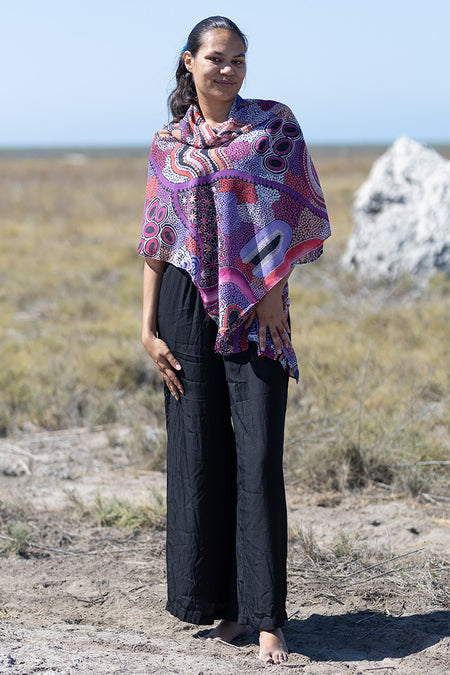 Jessica's art is inspired by family, Country, and Culture in the Yued region in Western Australia. In her debut polo and fashion range she celebrates and honours her heritage through vibrant pieces that each tell a distinct yet connected story.