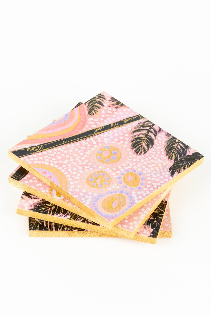 These coaster sets feature gorgeous artworks by Bidjara artist Sheri Skele. Her artworks express her deep connection with her Aboriginal heritage, the earth, Country and spirit.