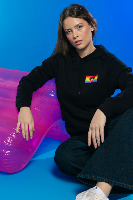 Pride Flag Black Cotton Blend Women's Hoodie - Pride Worn Proudly