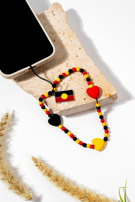 "Raise The Flag" Aboriginal Flag Beaded Phone Charm