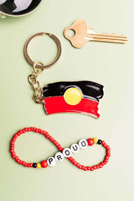 This keyring is a part of our ‘Raise the Flag’ collection, a range of products that celebrate the Aboriginal flag finally being freed and placed into public hands. Support Indigenous communities, and feel proud displaying the flag of the First People of our beautiful Country.