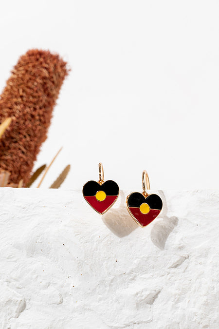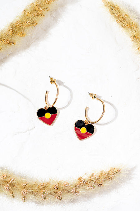 "Raise The Flag" Aboriginal Flag Heart Hoop Earrings