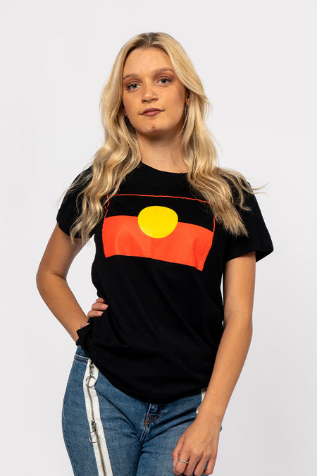 "Raise the Flag" Aboriginal Flag (Large) Black Women's T-Shirt Boxed Bundle